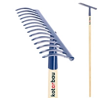 Greblă de grădină din metal cu 12 dinți și mâner din lemn