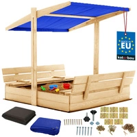 Groapă de nisip din lemn cu baldachin și bănci blocabilă mare naturală 100 cm