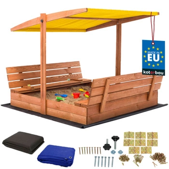 ( numărul de produse: 33 )Groapă de nisip din lemn cu baldachin și bănci blocabilă mare maro 100 cm