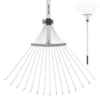Greblă de grădină din metal armat cu 16 dinți, cu mâner 154 cm